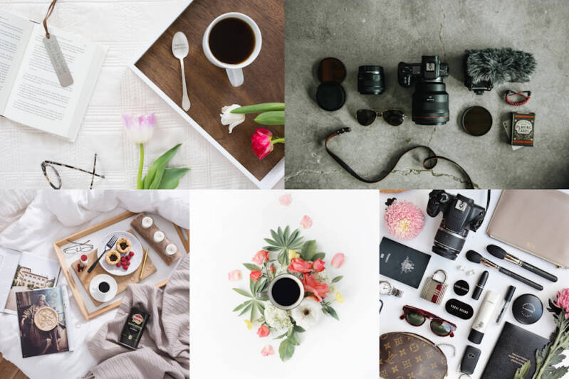 Hierna een aantal voorbeelden van flatlayfoto's.