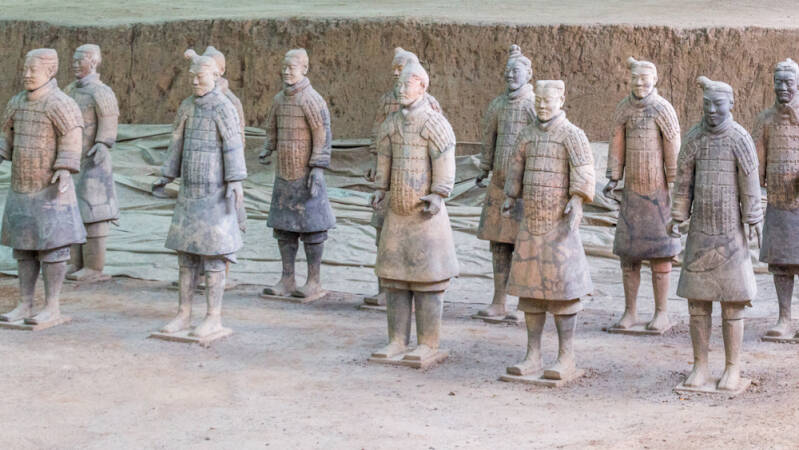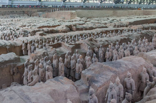 Het Terracottaleger is een indrukwekkende collectie van terracotta beelden, waaronder krijgers, paarden en strijdwagens. Deze beelden stellen de keizerlijke garde van keizer Qin Shi Huang (259 - 210 v.Chr.) voor, de eerste keizer van de eerste uniforme dynastie in het keizerlijke China.