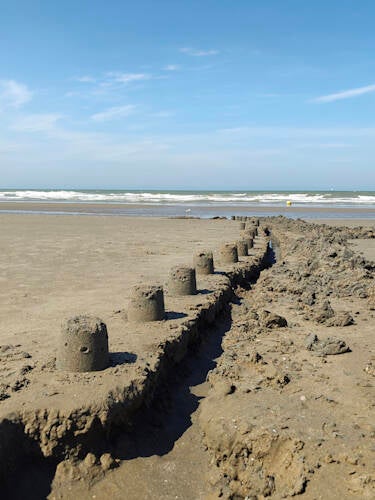 - Typisch aan de kust, bouwen van zandkastelen ...
