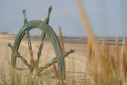 - Het enerzijds de rust op het strand aan zee in beeld brengt maar anderzijds het object dat verwijst naar de onvoorspelbaarheid en kracht van de zee.