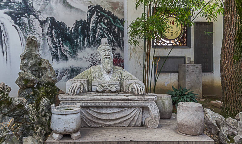 Het oude paviljoen van de luit Op woensdag 1 november waren we erlangs gelopen maar niet binnen geweest. Vandaag het "Ancient Lute Pavilion" (het oude paviljoen van de luit) dan toch bezocht.