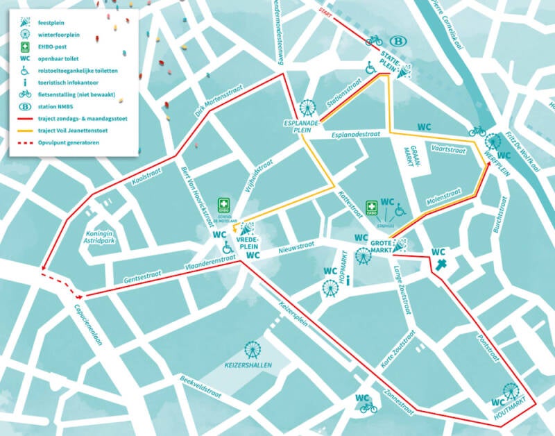 Het traject van de Voil Jeanettenstoet start om 15:00 uur en loopt van de Grote Markt naar het Vredeplein.