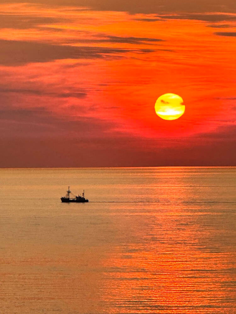 - Alles klopt aan deze foto: de compositie, de plaats van de boot, de plaats van de ondergaande zon, de kleuren..Pràchtig!